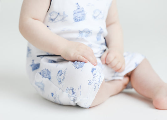 Regular price $36.00Regular priceUnit price / per$44.00Sale price $36.00Set sail for adventure with our Pirates Navy Printed Short Romper. Featuring a playful pirate-themed print, this romper is perfect for your little explorer. Crafted from 100% Peruvian Pima cotton, it ensures superior softness and comfort, making it ideal for everyday wear.
