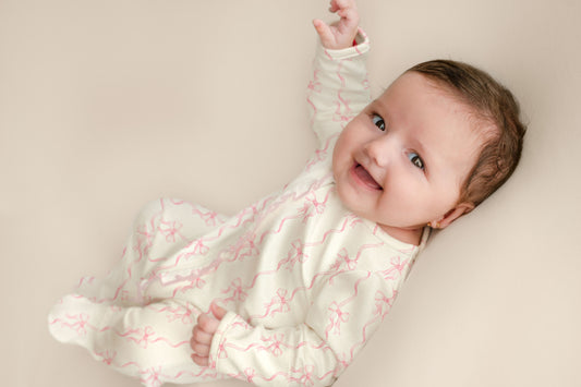 Regular price $46.00Regular priceUnit price / perSale price $46.00Dress your baby in timeless elegance with our Coquette Bows Footie, featuring delicate bow details that add a sweet, sophisticated touch. Made from 100% Peruvian Pima cotton, this footie is incredibly soft, breathable, and perfect for your baby's sensitive skin. Whether for a special occasion or cozy day at home, it's designed to keep your little one stylish and comfortable.