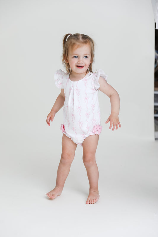 Regular price $39.90Regular priceUnit price / per$46.00Sale price $39.90Add a sprinkle of sweetness to your baby girl's wardrobe with our Coquette Bows Bubble. This darling one-piece features a graceful pink bow print, fluttery ruffle sleeves, and soft bows at the legs for an extra charming touch. Crafted from 100% Peruvian Pima cotton, it's luxuriously soft and breathable—perfect for keeping your little one comfy all day long.